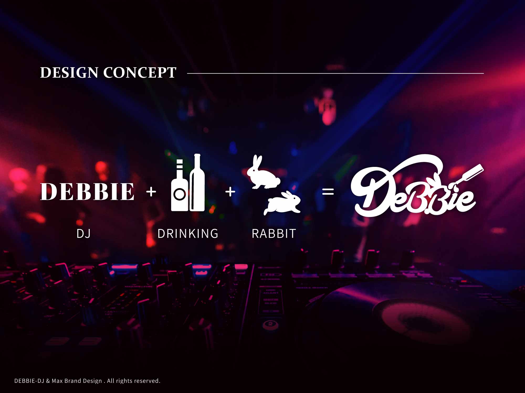 俏皮兔子跟酒瓶自然嵌入Logo字體設計中,象徵俏皮與吸睛魅力,精準描繪Debbie在夜店舞台上的強烈個人風格,讓Logo在一眼瞬間就能勾起共鳴與記憶。