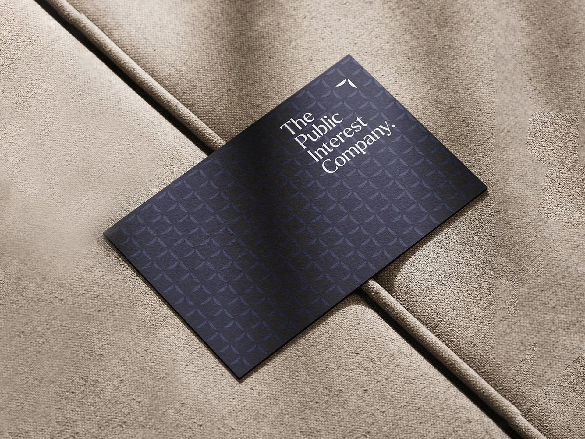 整體以藍色紋路襯出公司名字,形成低調但富有層次感的視覺效果,適合專業顧問、公關或非營利組織等的品牌使用。