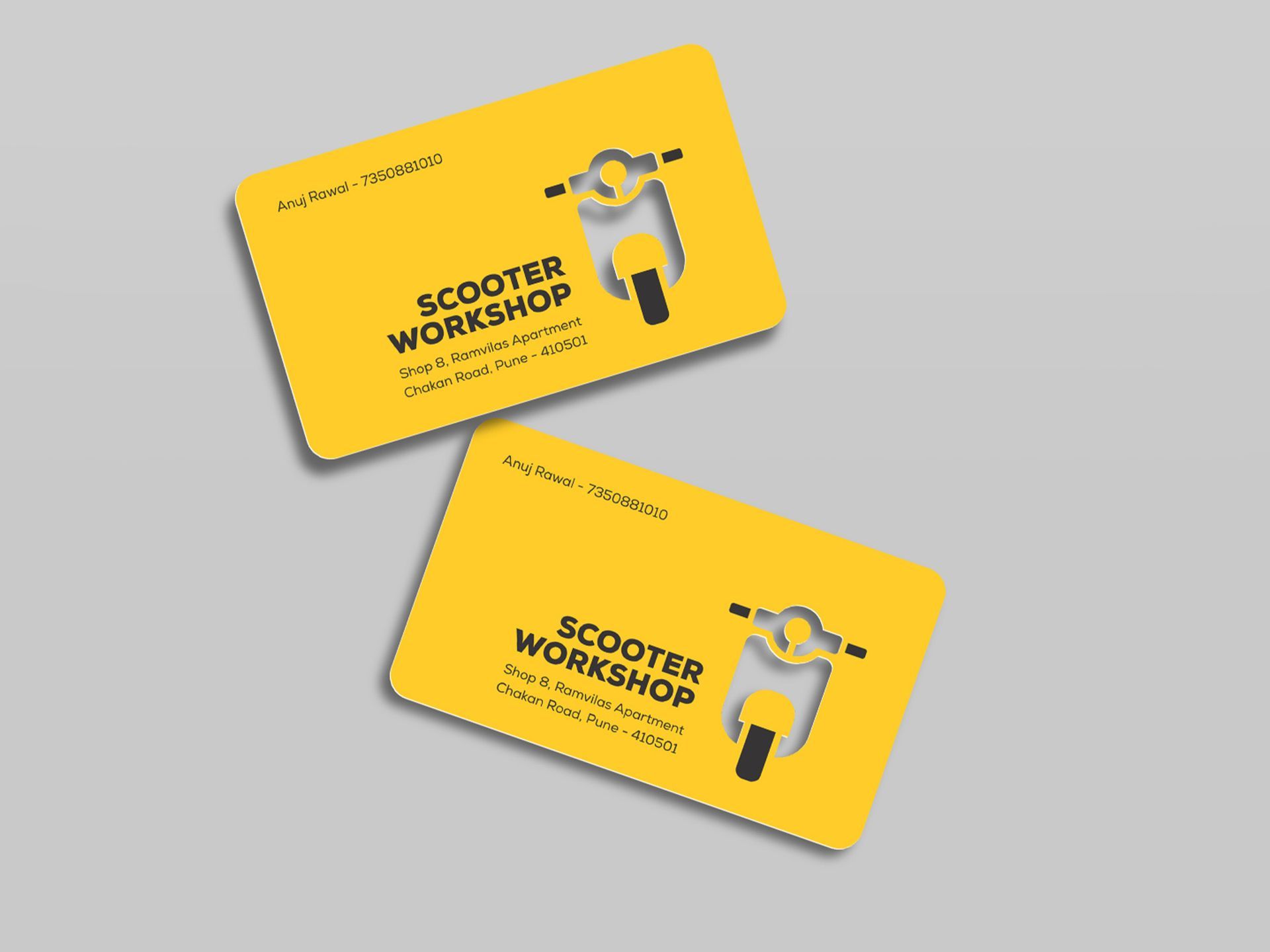 名片最吸睛的地方是中間的機車圖案採用簍空設計,不僅讓整體視覺更有趣味性,還能隨著不同背景呈現出不同顏色的機車造型,增添互動感與變化性。