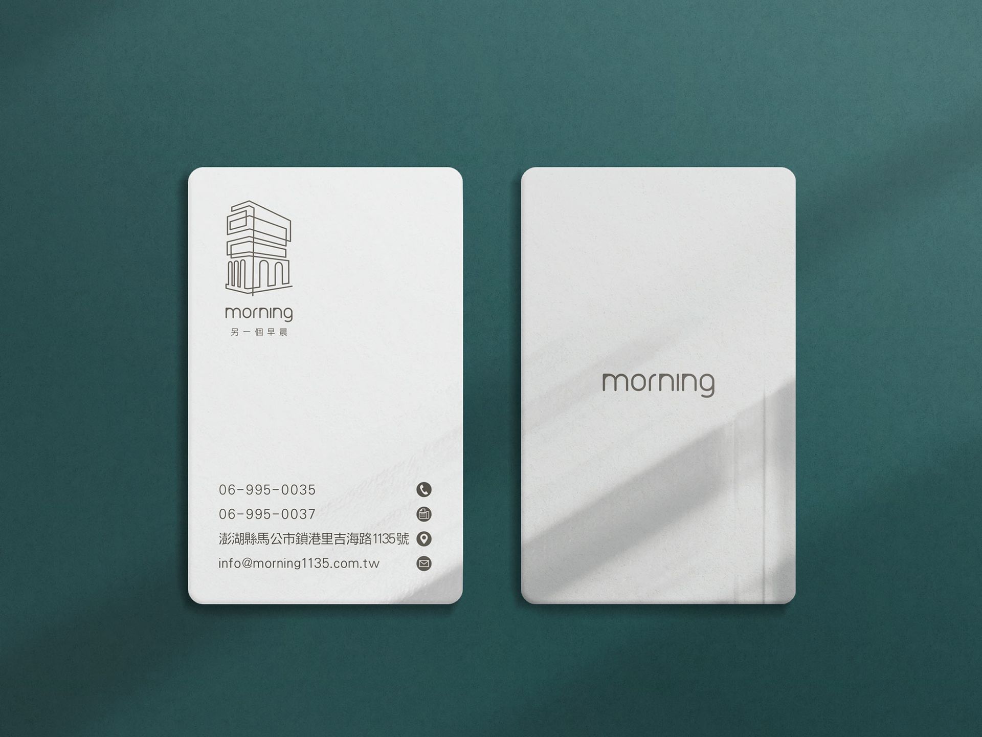 這款名片設計為澎湖民宿「另一個早晨 morning」量身打造,以極簡留白設計結合溫柔光影與凸版印刷,呼應品牌名稱中「早晨」的陽光意象。