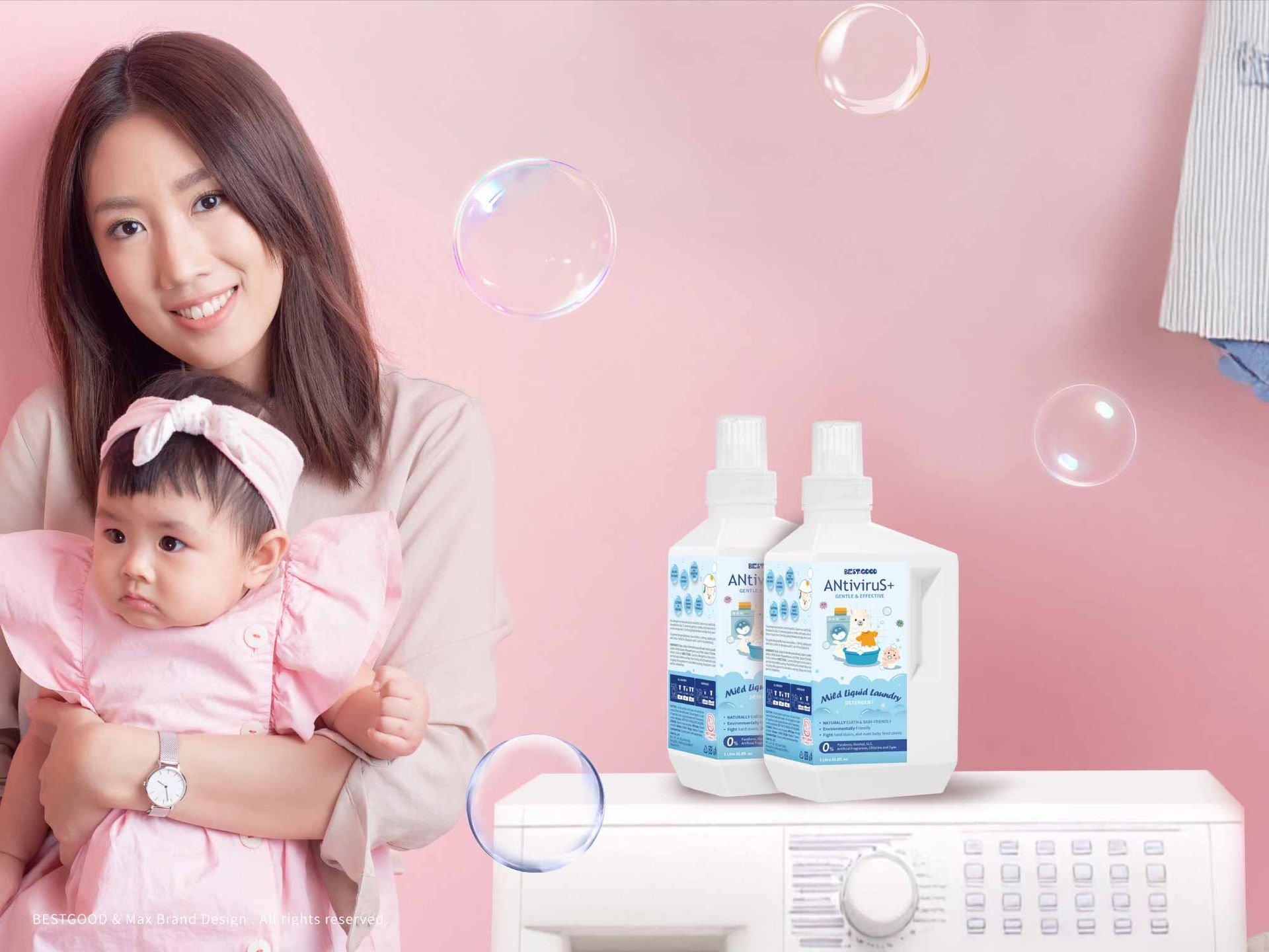 ✧ logo色彩精準應用:以溫柔粉紅為主色調,呼應母嬰產業「安心與溫柔守護」的核心形象。