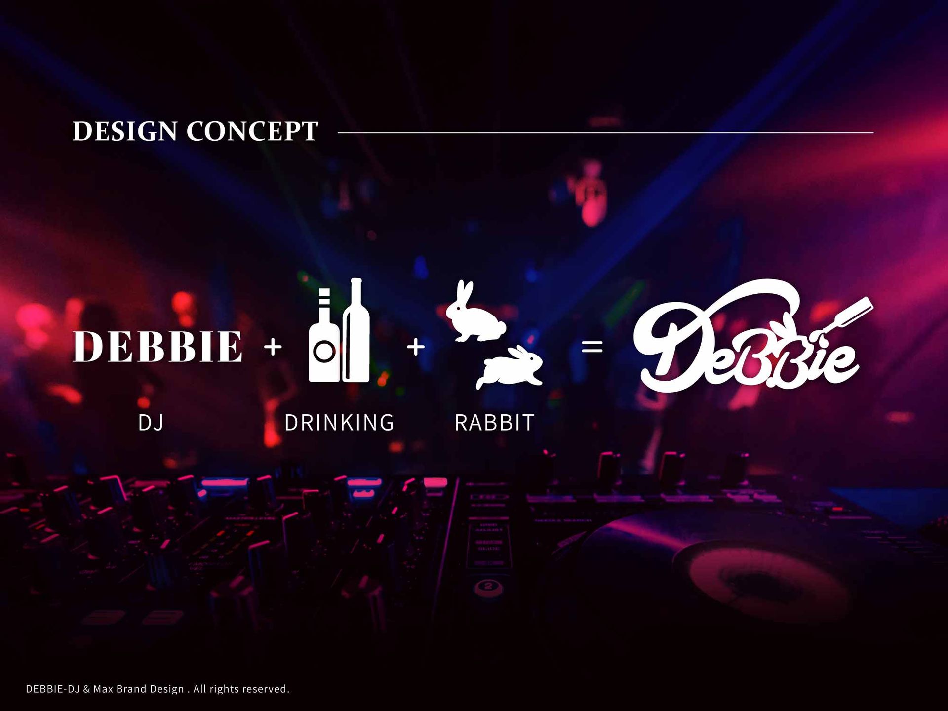 俏皮兔子跟酒瓶自然嵌入Logo字體設計中,象徵俏皮與吸睛魅力,精準描繪Debbie在夜店舞台上的強烈個人風格,讓Logo在一眼瞬間就能勾起共鳴與記憶。