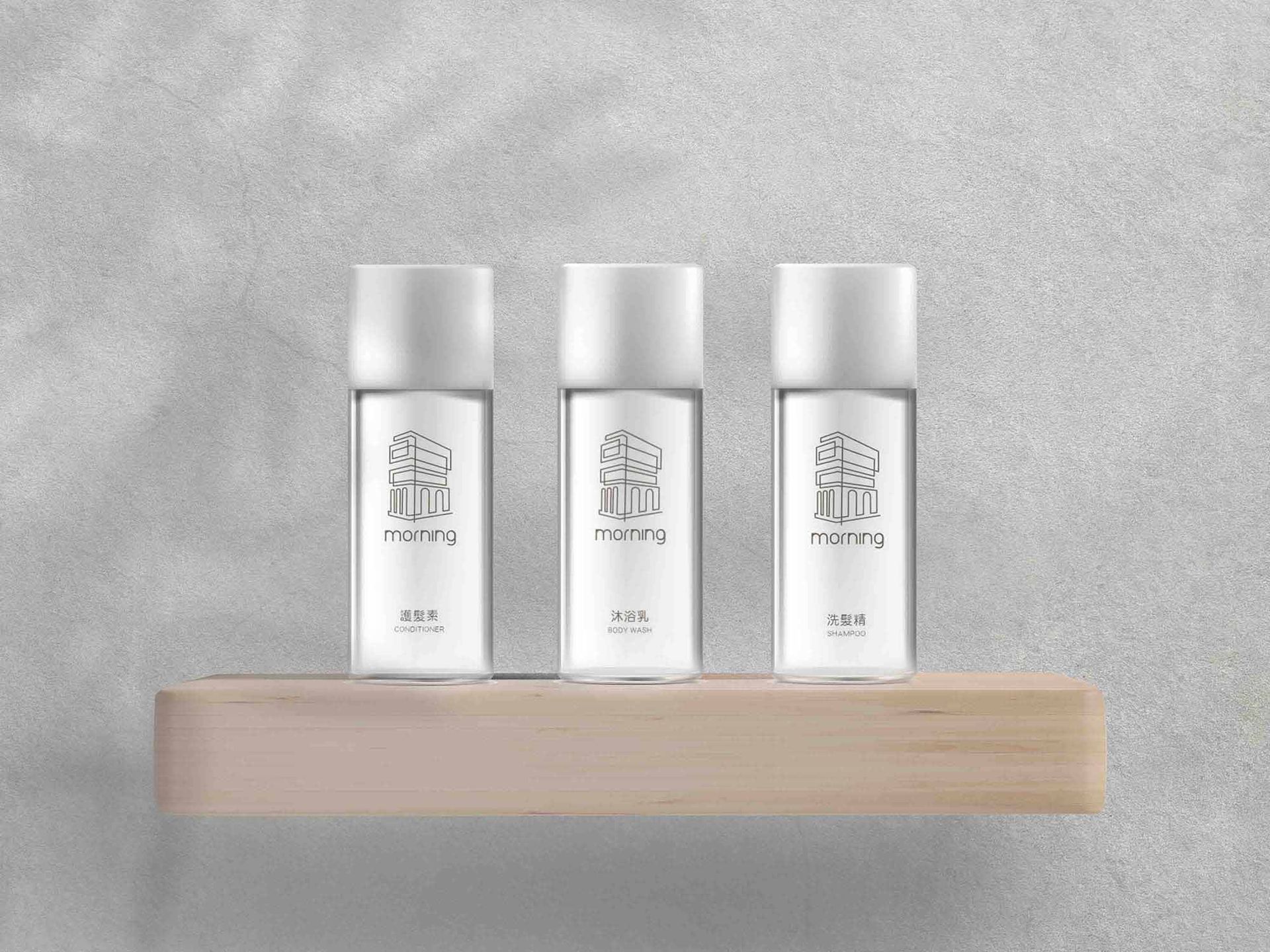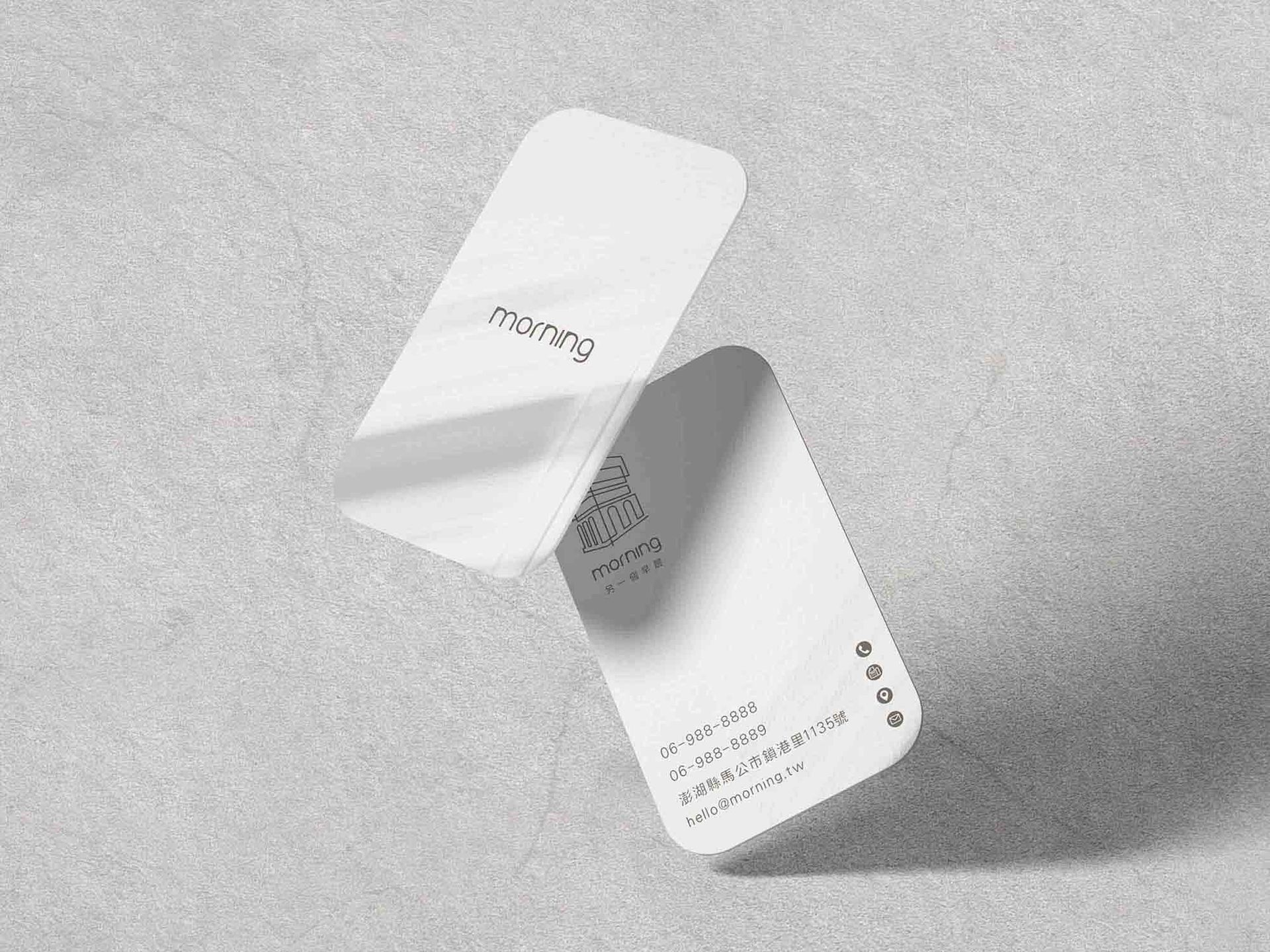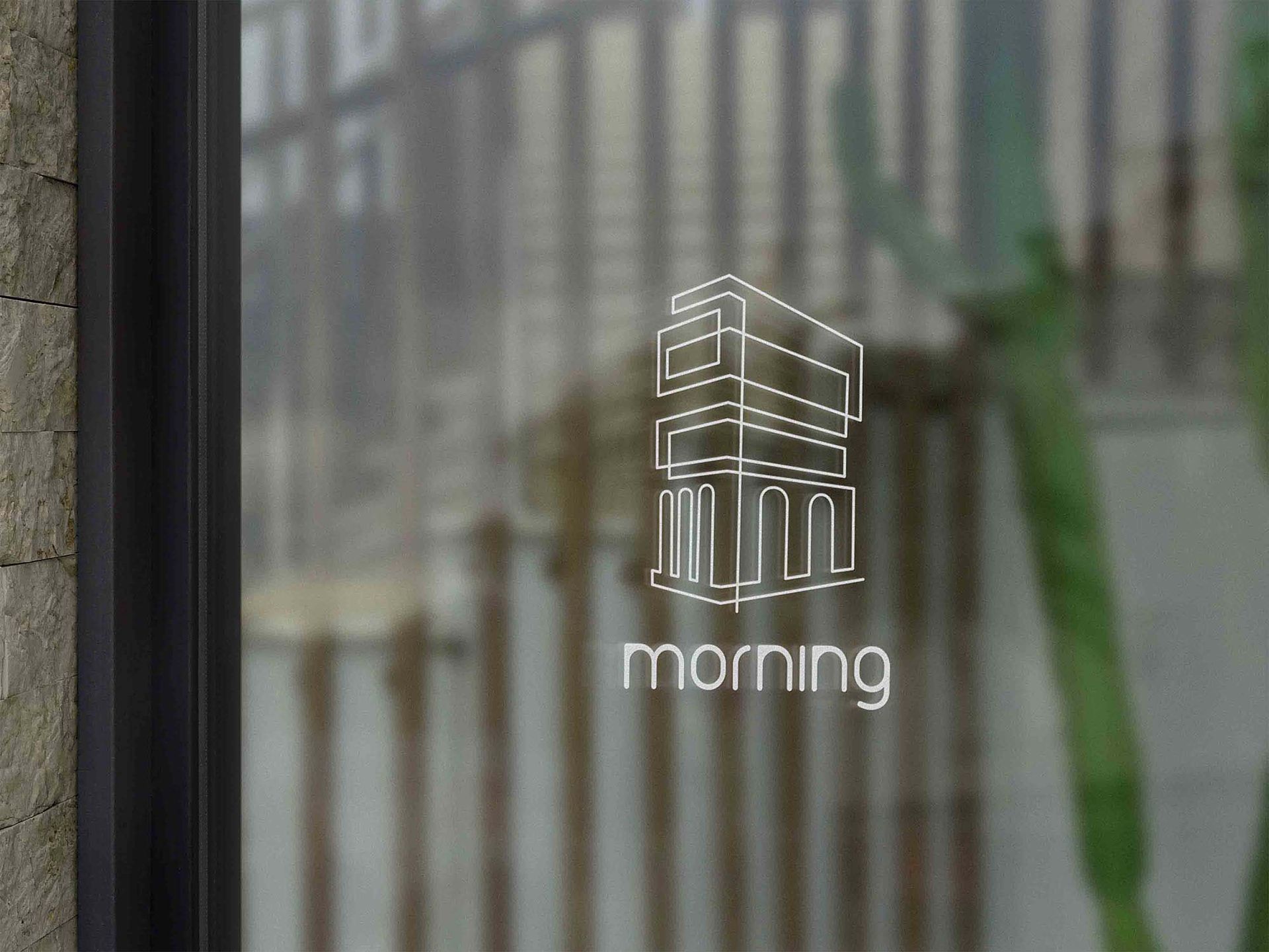 ✧ 字體設計融合民宿元素:在morning 的字母中巧妙融入弧形落地窗造型,展現空間特色。