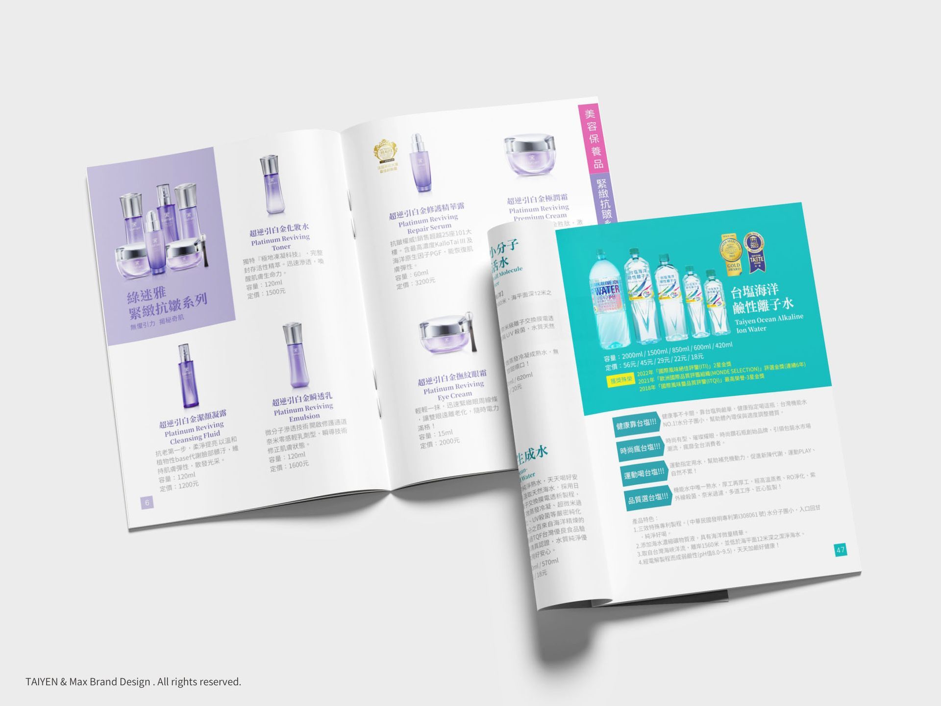 透過一致性的視覺設計,消費者能快速辨識產品特色與定位。再搭配適度留白的設計手法,不僅讓頁面更易閱讀,更為整本產品型錄增添高質感與專業氛圍,將品牌形象提升到全新層次。